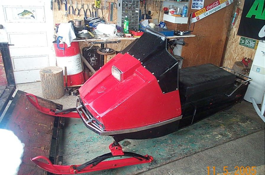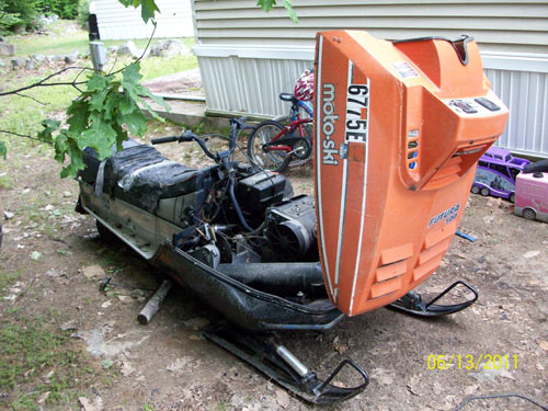 of the sled as received and current progress on the hood and give hints to what will be a unique and nice riding vintage trail machine. Check